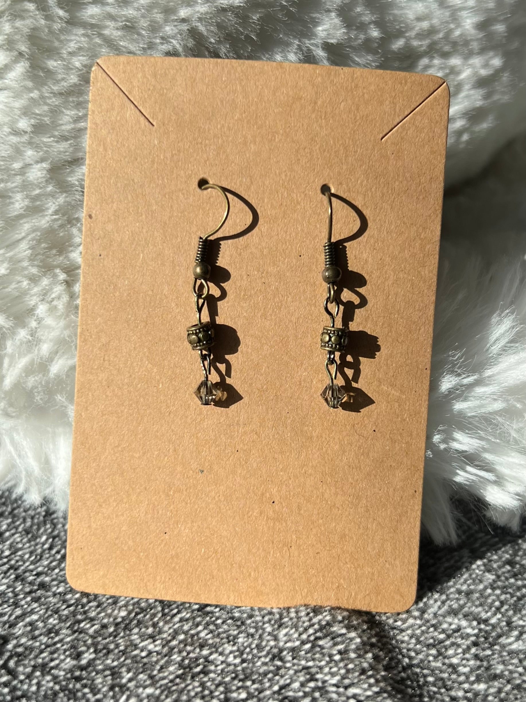 "Add a touch of elegance to your look with these bronze dangle earrings! The subtle sparkle adds a hint of glamour without being too flashy. Perfect for any occasion."